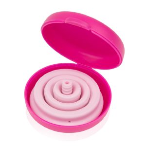 La Intimina copa menstrual Lily Cup Compact combina silicona médica suave, diseño plegable y estuche rígido, ofreciendo protección y discreción en un solo producto.