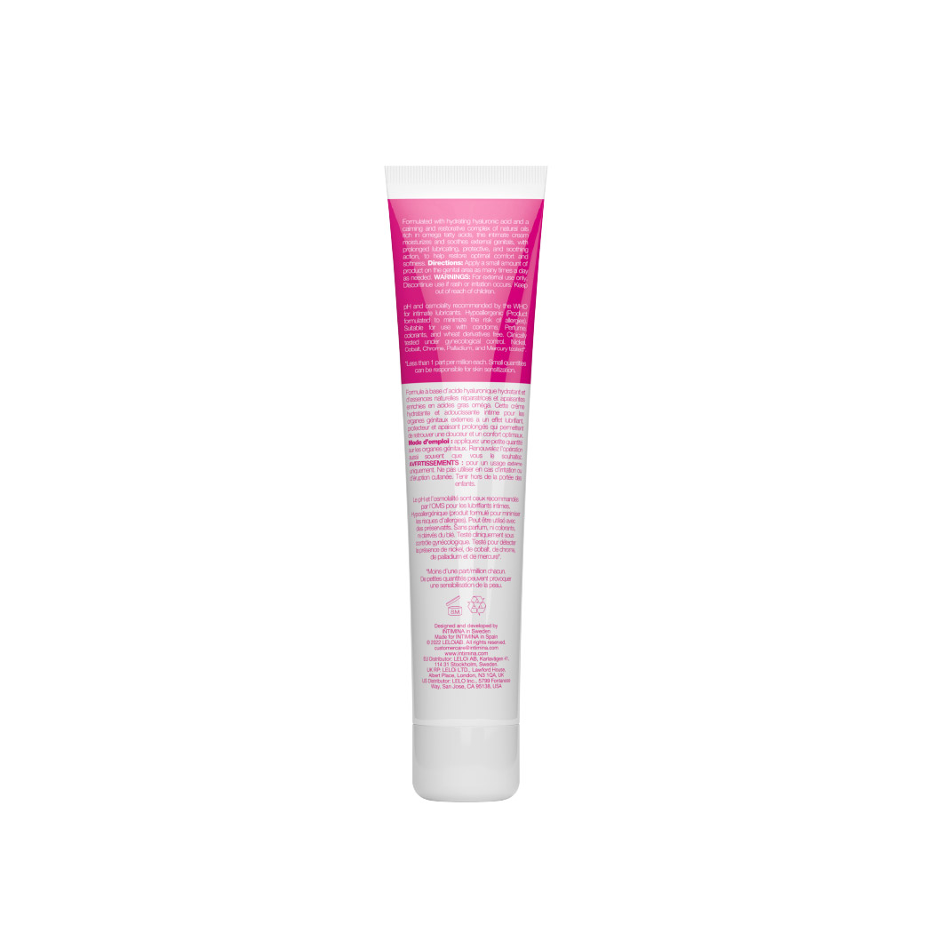 Balmy es una crema íntima hidratante y calmante formulada para brindar alivio inmediato a la sequedad, irritación y picor en la zona íntima externa. Enriquecida con ácido hialurónico y escualeno, ayuda a restaurar la barrera cutánea y mantener el equilibrio natural del pH sin dejar residuos. Ideal para pieles sensibles, depilación o molestias diarias, Balmy es compatible con condones, libre de fragancias, alcohol y completamente vegana. Su textura suave se absorbe rápidamente para ofrecer confort diario y protección prolongada.